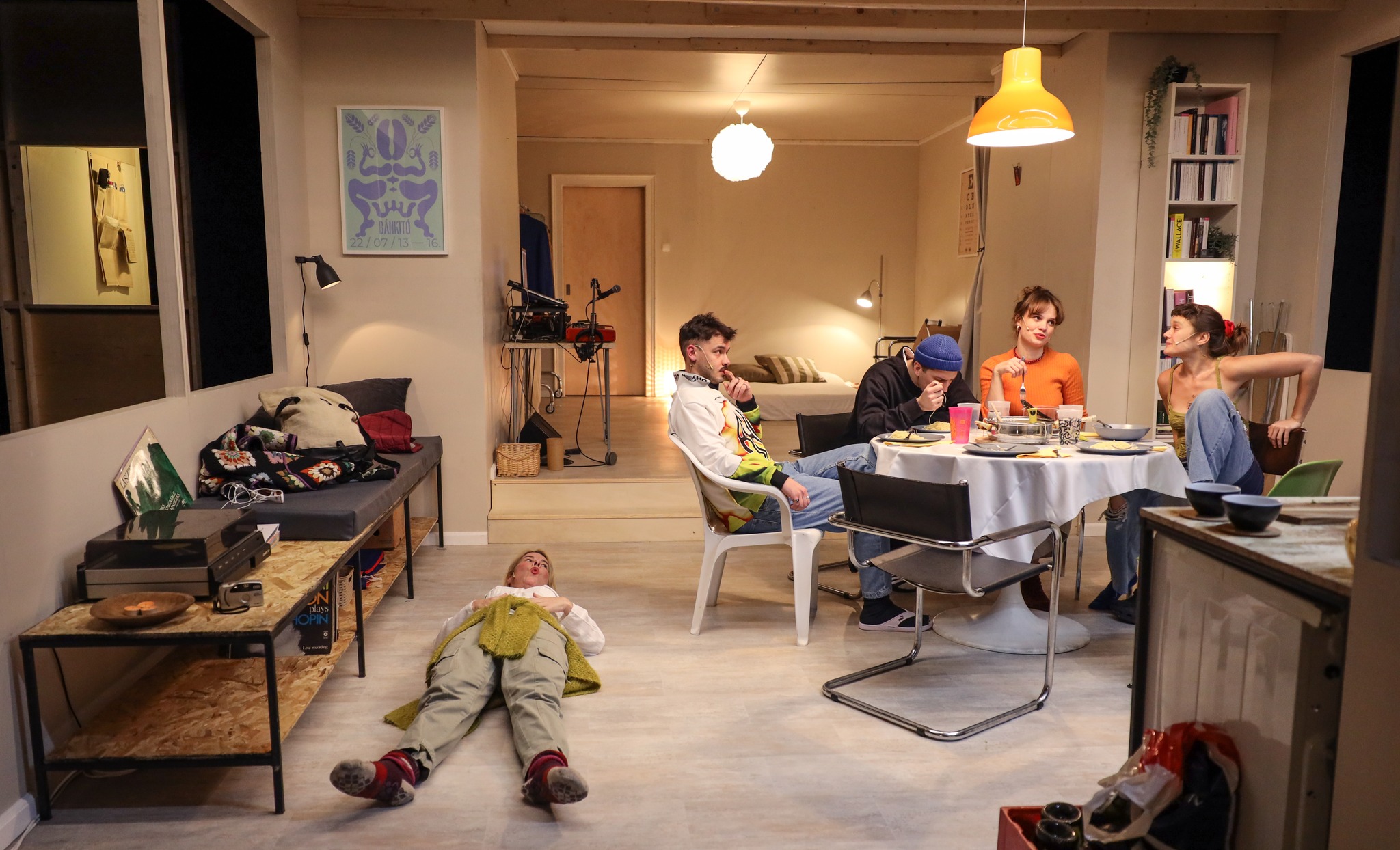 Bemész a nézőtérre - de hoppá, a díszletben találod magad. Méghozzá egy horányi házban, ahova kiköltözött egy fife pár, akiknek nemrég született gyereke. Mielőtt leülsz a helyedre, az otthonukon, átlagos életükön keresztül vezet az utad: benézhetsz a hűtőjükbe, látod, hogy a mac and cheese receptje van megnyitva a Streetkitchen-ön a lány iphone-ján. Egy látszólag átlagos helyzetből (meglátogatnak minket anyósék, majd egy berlini lány érkezik) szép lassan kerekedik ki a konfliktus, és minden egyén saját problémája. Ez fiatal felnőtteknek, de amúgy szüleinknek is bomba ajándék!
