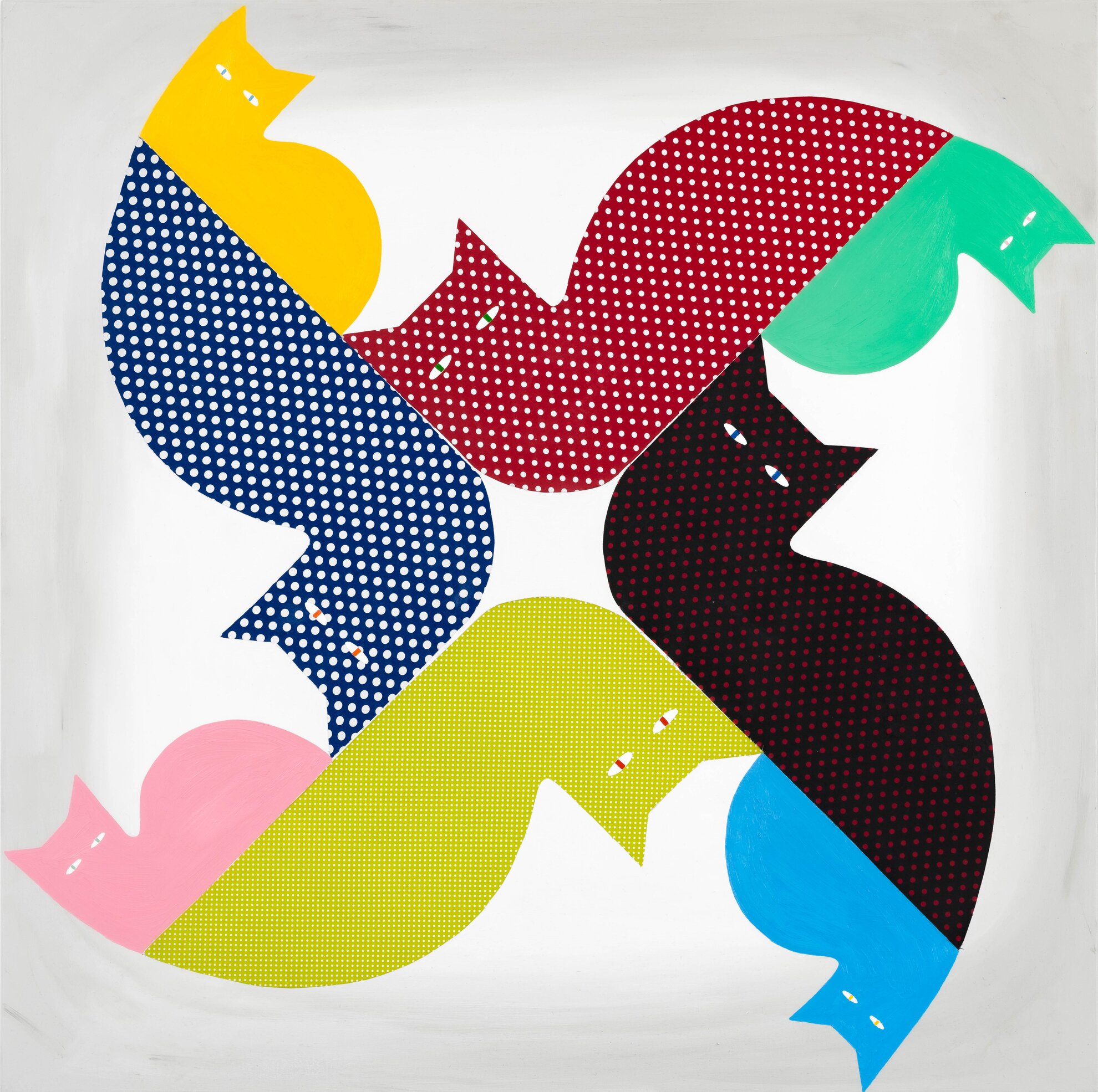BENCS Dániel Macskatánc 2023, olaj, textil, vászon, 120 x 120 cm