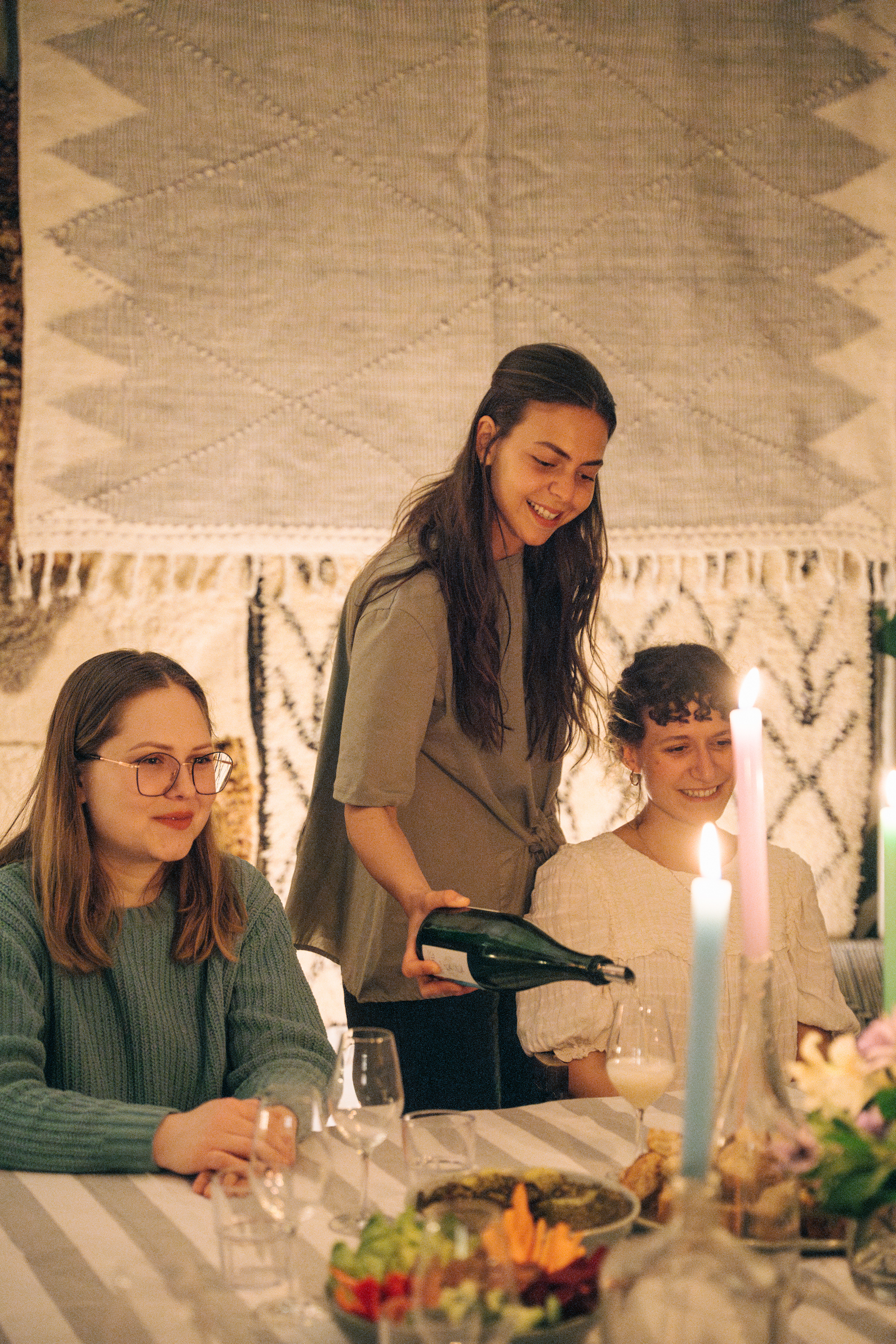 Így indult el a Lasciva Wines koncepciója, ami 2024 elején – egy sorszerű találkozásnak köszönhetően– az Abra rugs kézzel szőtt szőnyegeivel díszített stúdiójában talált otthonra. Ahogy az Abra Rugs alapítója, Bori esetében, úgy Noémi eseményeinél is központi szerepet kap a nőiség és a női közösségek támogatása.