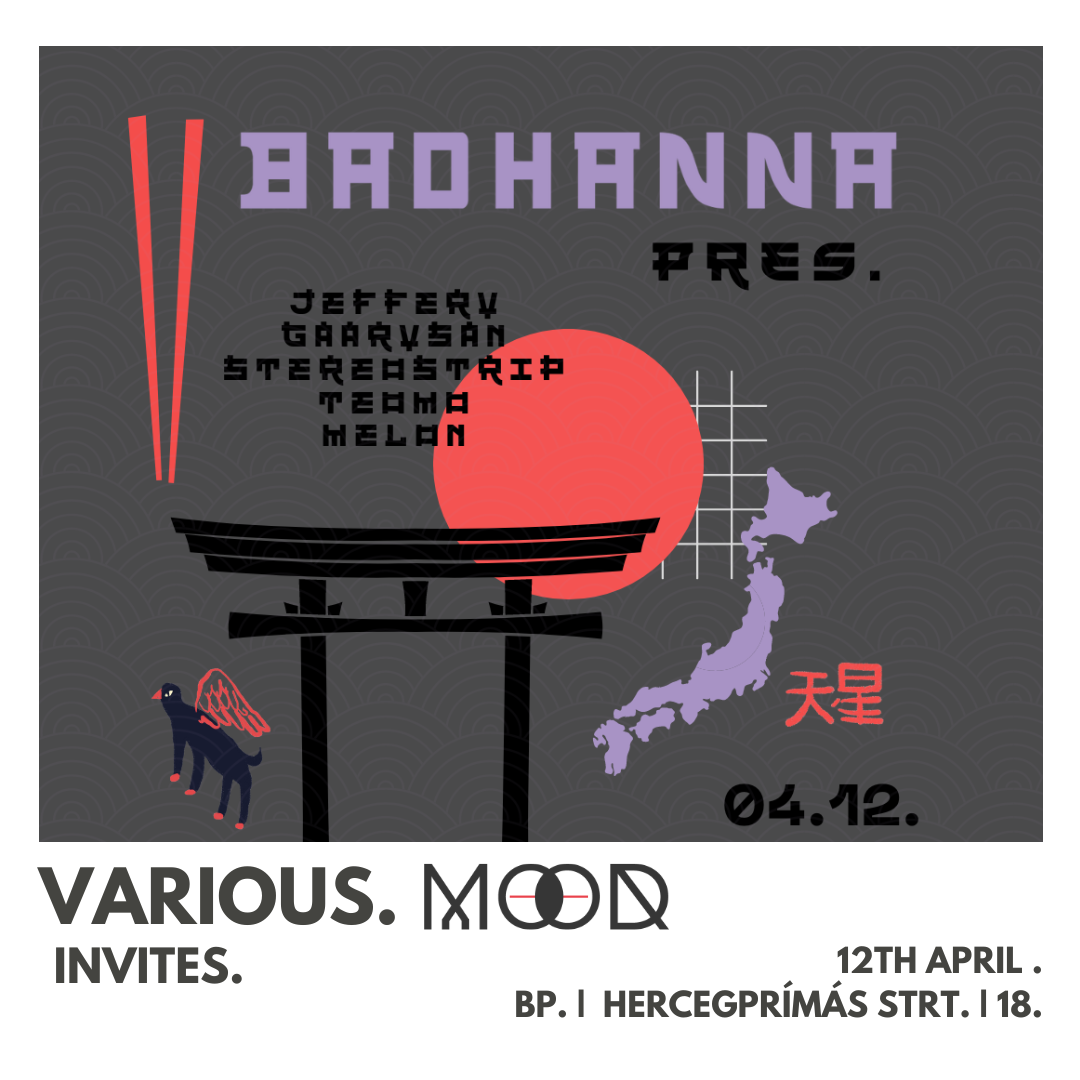 Another Friday has come when the Mood DJs will play their favorite house music from behind the decks of Badhanna. The evening's quarter-heated atmosphere will be spiced up with selected deep and minimal beats, in order to make the dance floor lit. The residents of Various will also be present, and they will represent the sound world of their series with their tracks specially selected for this party.
