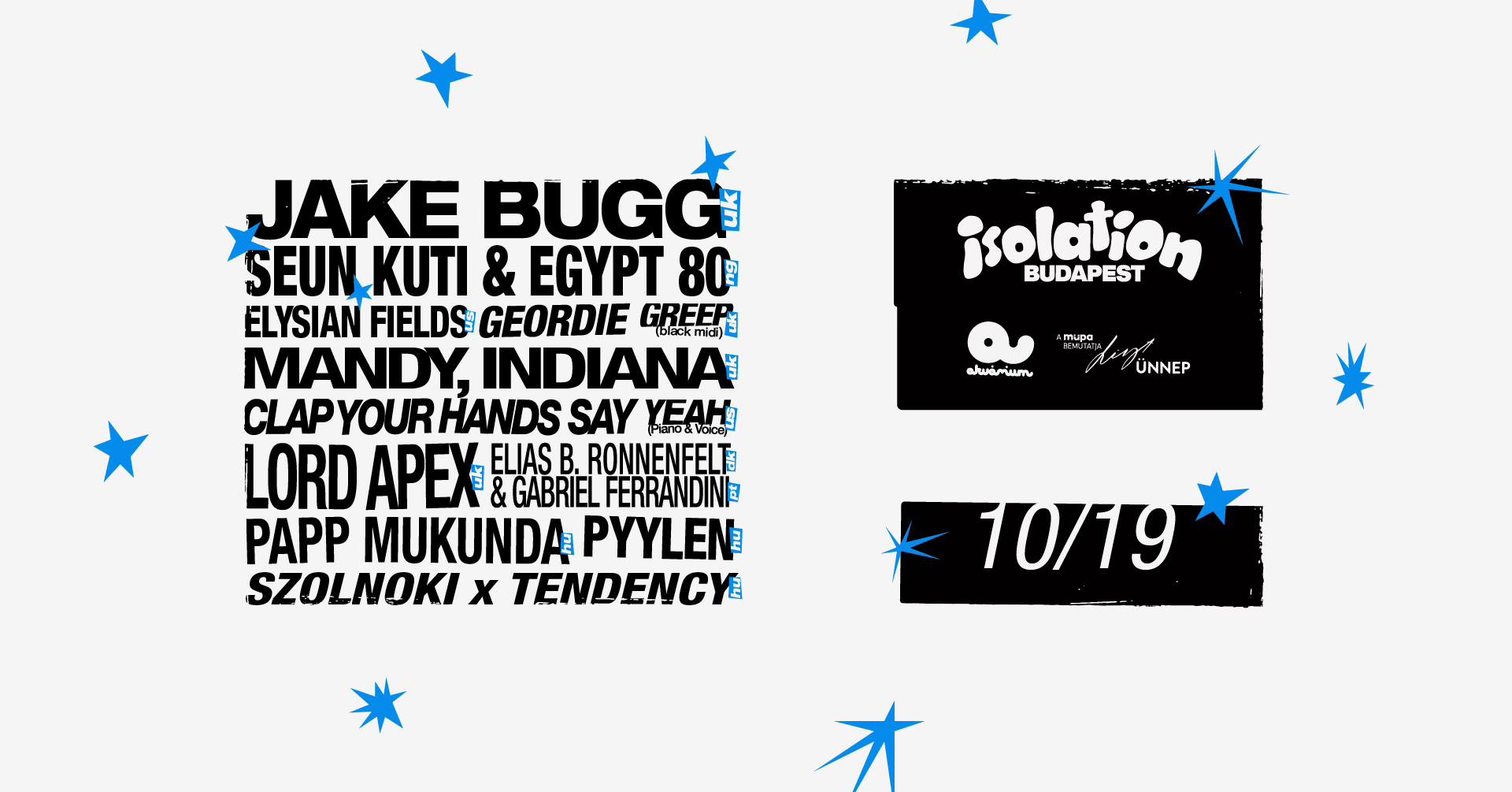 On 19 October, Isolation Budapest returns for the third time with its strongest musical line-up yet, organised by Liszt Festival and Akvárium Klub. Among others, Jake Bugg, Seun Kuti & Egypt 80 will be at this year's festival. Joining them now are cult Brooklyn band Elysian Fields, guitarist and frontman of the recently disbanded black midi Geordie Greep, Mandy, who debuted with one of last year's strongest albums, Indiana, and local up-and-comers Papp Mukunda, Szolnoki x Tendency, and pyylen.
