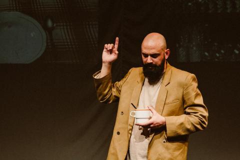 A JESZ előadása nem kisebb dologra vállalkozik, mint hogy megidézi magát Szókratészt, azaz az európai filozófia nagyatyjának szellemét, hogy személyesen mesélje el védőbeszédének, kálváriájának és kivégzésének történetét, valamint együtt gondolkozzon velünk elvekről, erényről, igazságról, a jó életről, valamint arról, hogy halhatatlan-e a lélek és mi várhat bennünket a halál után.