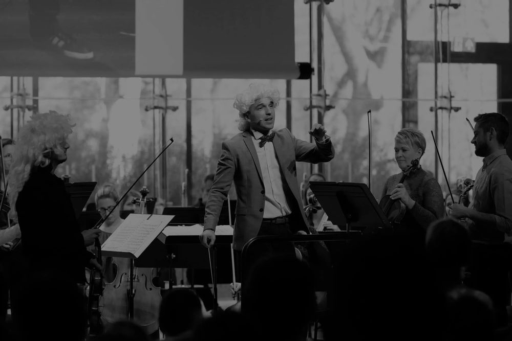 This time, the Danubia Orchestra tells the hundred-thousand-year story of music in 45 minutes. Through live music, movement, dance, a collective conga party, and a bit of time travel (complete with wigs), they show how music has evolved through the centuries — and how it sounds today.