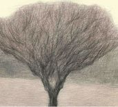 In our exhibition, the main emphasis is on landscapes inspired by the countryside around Rome and the Carpathian Basin. These images are mainly created with colored pencils on a watercolor background, are large in size, and create a special atmosphere. In addition to the usual color scheme of landscape depictions, he boldly uses shades of yellow or purple to color the sky or ground. The main organizing principle of these landscape portraits is the motif of the tree, both as a component of the forest and as a planned landscape element in a man-made garden. These images can also be understood as spiritual maps, in which the human and cosmic scales can be represented simultaneously.