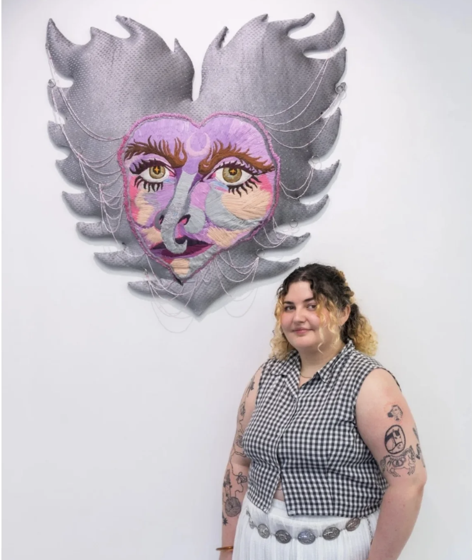 Thinking within matriarchal systems, Dankó extends this logic to both her iconography and her material choices. Textiles carry transgenerational memories of domestic labour, care, survival and elevated into autonomous artworks. In this way, these materials keep their own original histories while assuming new authority.