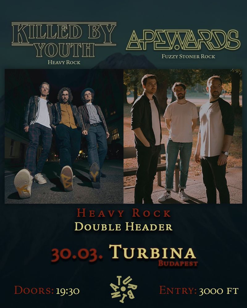 In spring 2026, Wels-based heavy rock trio Killed by Youth and Marburg’s stoner rock trio Apewards go on the road together for a co-headline tour. Two bands, two sounds — one night full of energy, uncompromising live power, and handcrafted rock music.