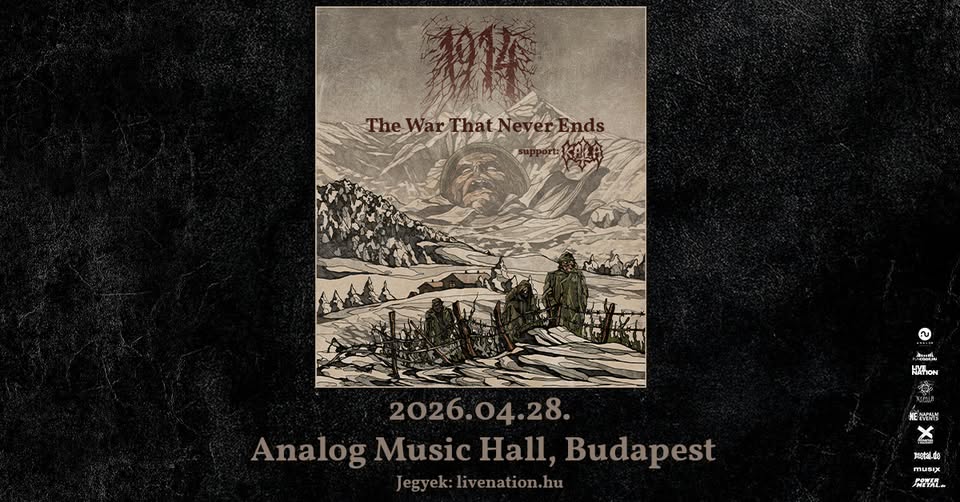 Ukrainian blackened death/doom band 1914 has announced their The War That Never Ends tour, which will arrive at Budapest’s Analog Music Hall on April 28, 2026. The tour centers around the group’s latest studio album, Viribus Unitis, released on November 14, 2025. The tour’s special guest will be the Danish band KATLA.