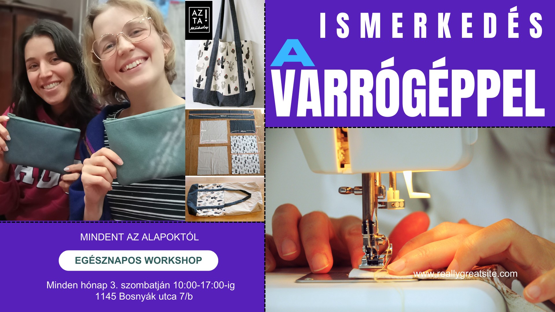 Megtanulnál varrógéppel varrni? A legjobb helyen jársz! Ez egy alapozó hobbi varrókurzus azoknak, akik a varrást választják kreatív időtöltésül. És most szuper BARÁTNŐ KEDVEZMÉNY: az egész napos intenzív workshop kettőtöknek mindössze 35.000 Ft!