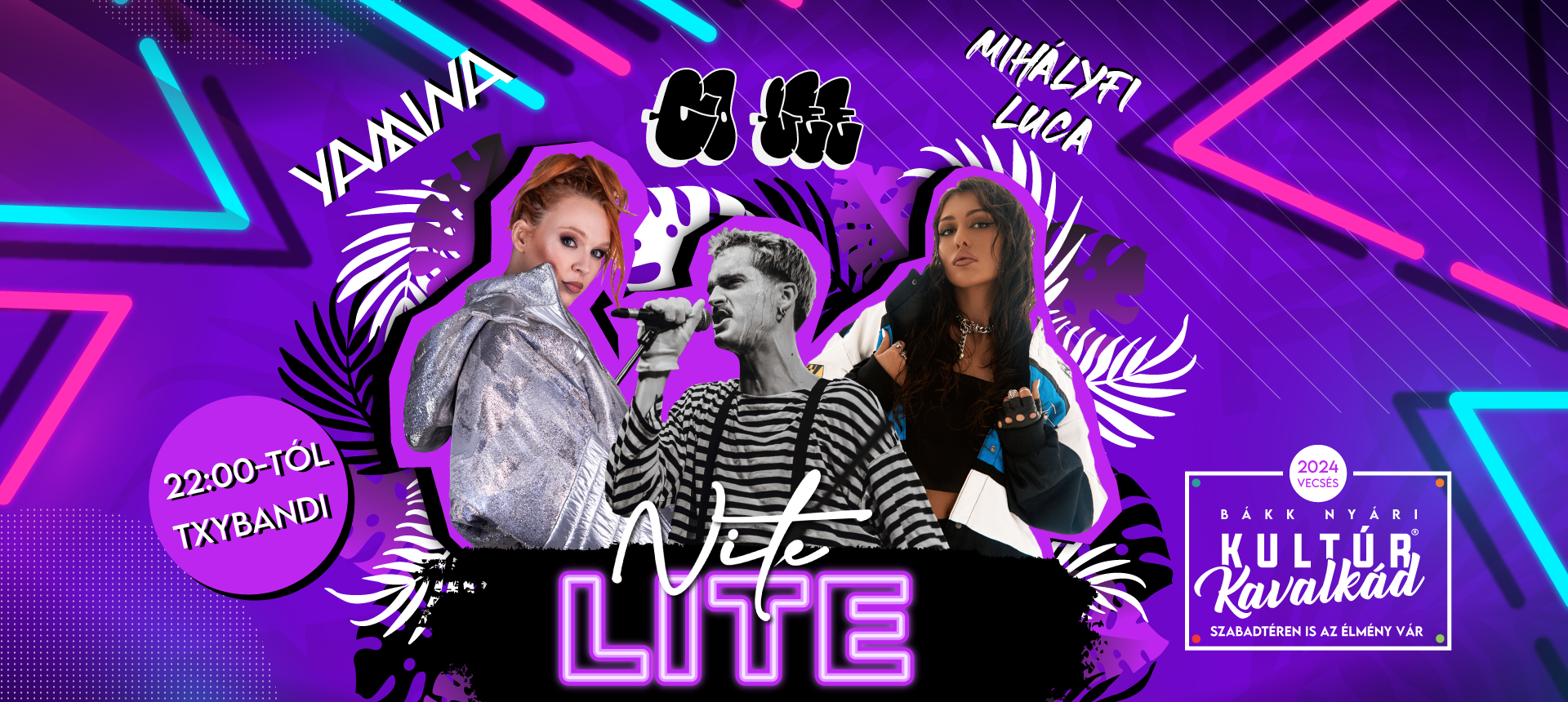 Egy könnyed és laza nyári éjszaka Vecsésen. Színpadon Yamina, Co Lee, Mihályfi Luca és txybandi.