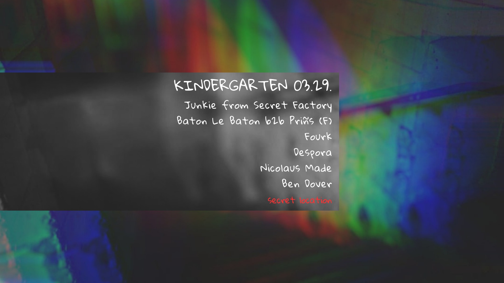 A Kindergarten visszatér a föld alá, az esemény jellegéhez legjobban passzoló underground helyszínre.