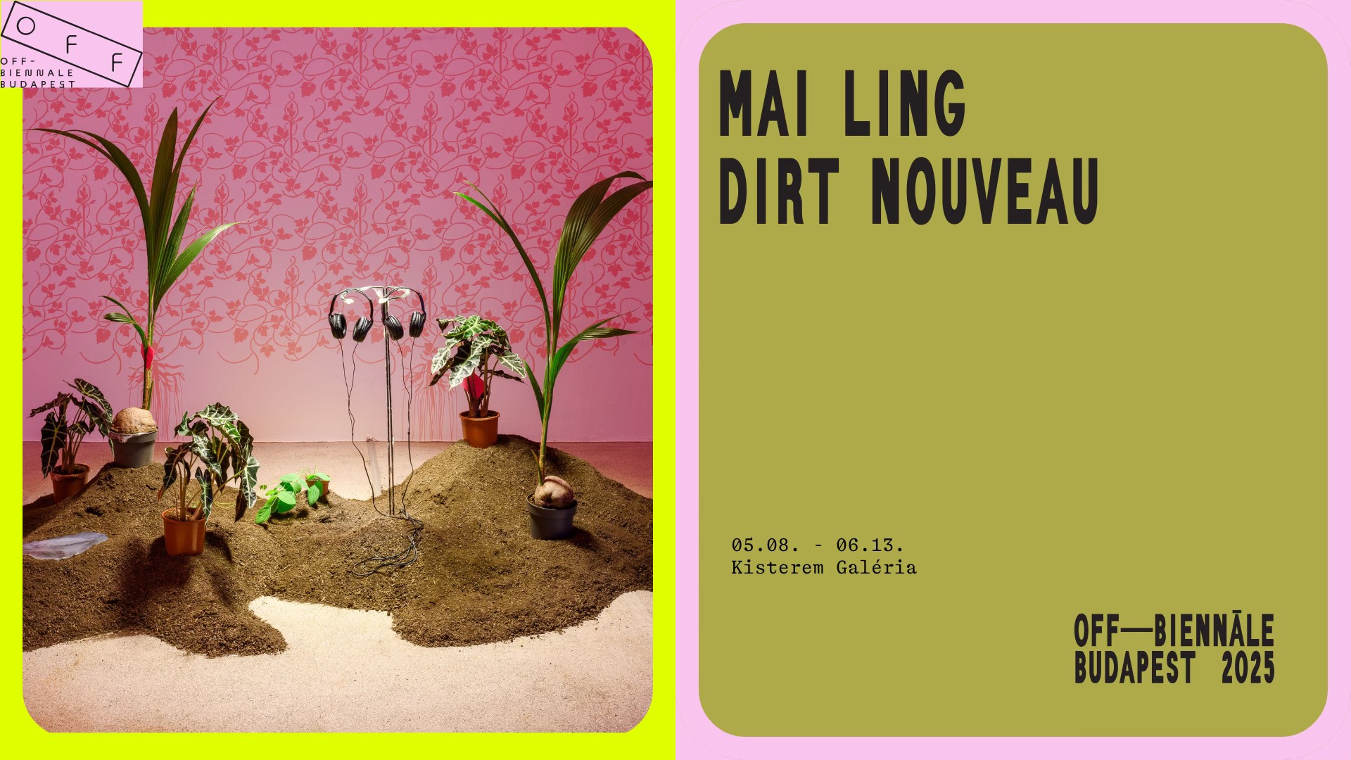 A bécsi székhelyű Mai Ling művészkollektíva az OFF-Biennále keretében a Kisterem Galériában mutatkozik be. A Dirt Nouveau című kiállítás egyik főszereplője a kudzu növény, amit 1876-ban az Egyesült Államokban megrendezett világkiállításon dísznövényként mutattak be a nagyközönségnek. Később a talajerózió megakadályozására használták a mezőgazdaságban. A Kelet- és Délkelet-Ázsiában, valamint néhány csendes-óceáni szigeten őshonos kudzu hagyományos szőttesek egyik összetevőjeként ismert; de a népi gyógyászatban és a kulináriában is használják. Gyökeréből sűrítőanyagot és ragasztót készítenek. A kudzut Európában invazív növényként tartják számon.