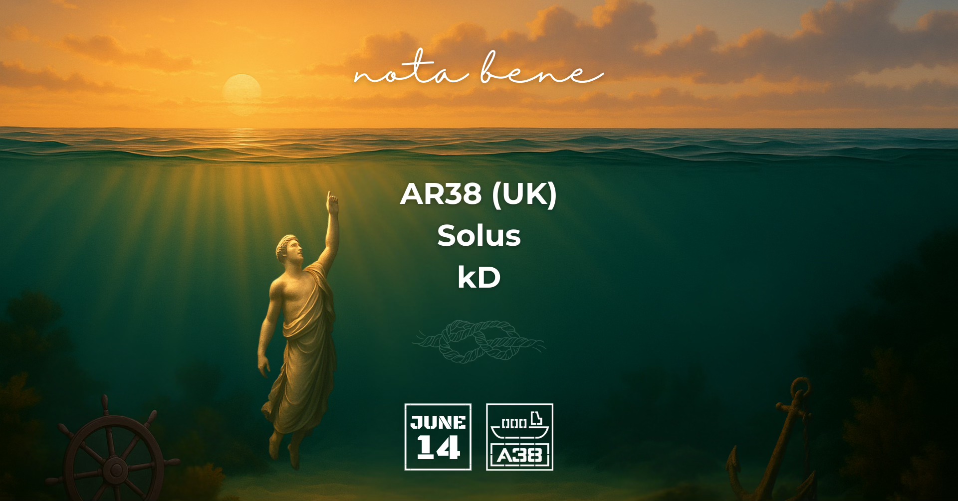 Az alkalomra az AR38 duó érkezik hozzánk az Egyesült Királyságból, akik már számos angliai helyszínen bizonyítottak, és olyan kiadóknál jelentek meg, mint a Moxy Muzik, a Whoyostro vagy a Saver Records. Melléjük csatlakozik két rezidensünk, Solus és kD, hogy közösen teremthessük meg a teljes nota bene élményt.
