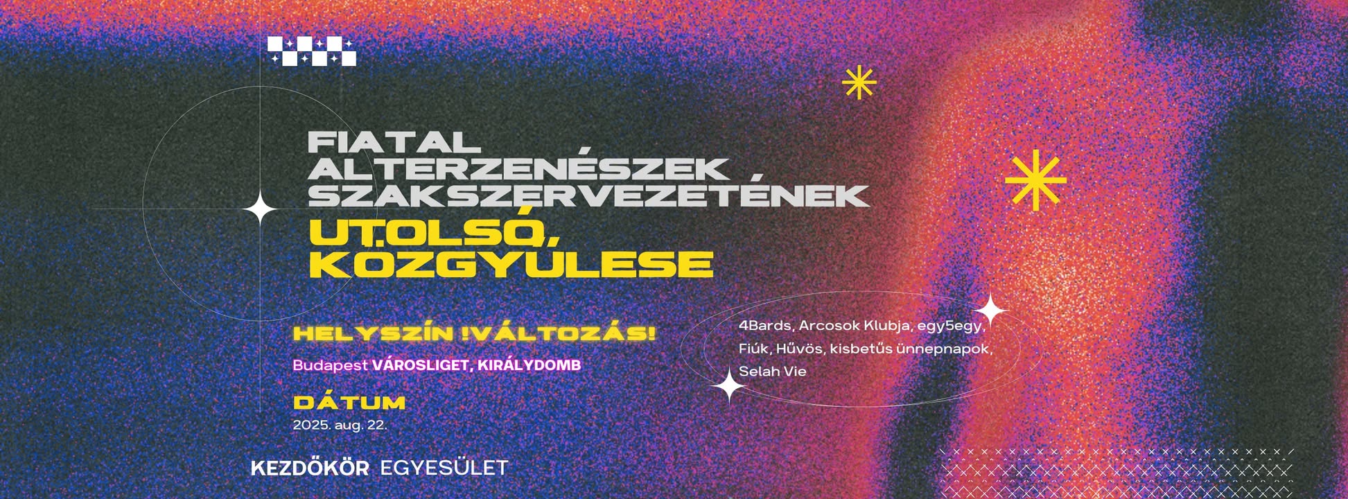 📲 Az Utolsó Közgyűlésen az alapítózenekarok többsége mellett – 4bards, egy5egy, kisbetűs ünnepnapok, Selah Vie – velünk tart az Arcosok Klubja, a Fiúk és a Hűvös. 📲