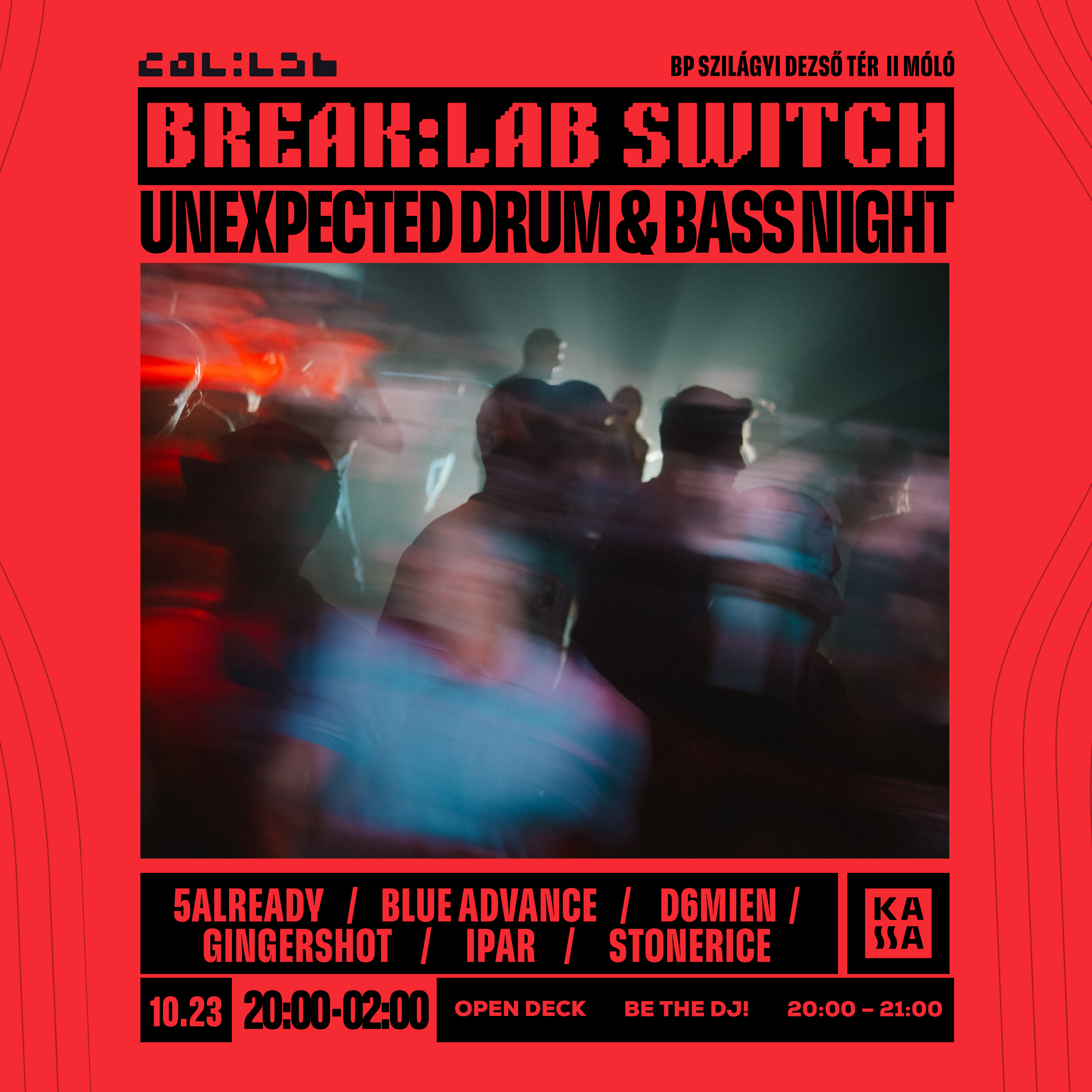 A név magáért beszél: a SWITCH epizódban a hazai technókultúra jól ismert arcai mutatják meg törtebb oldalukat, Stonerice és 5already rezidenseinkkel kiegészülve – basszus, energia és közösség, Col:lab módra.