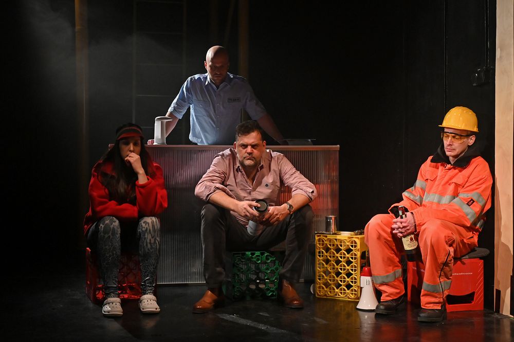 Lázadások helyett az önemésztés, elkallódás korát éljük. Előadásunk fókuszában helyüket nem találó, kétségbeesett emberek vannak. Melósok, bolti eladók, portások akadnak el az életükben. A maguk csetlő-botló módján, hiányos kifejezési eszközeivel megmosolyogtatóan, de konokul keresik a kiutat, a saját létezésük alapjaira kérdezve rá, vérmérséklete szerint ki fekete humorral, ki ledermedéssel, ki világba kiabált dühvel. Kibillent embereket látunk, az eldőlés előtti-alatti pillanatban.
