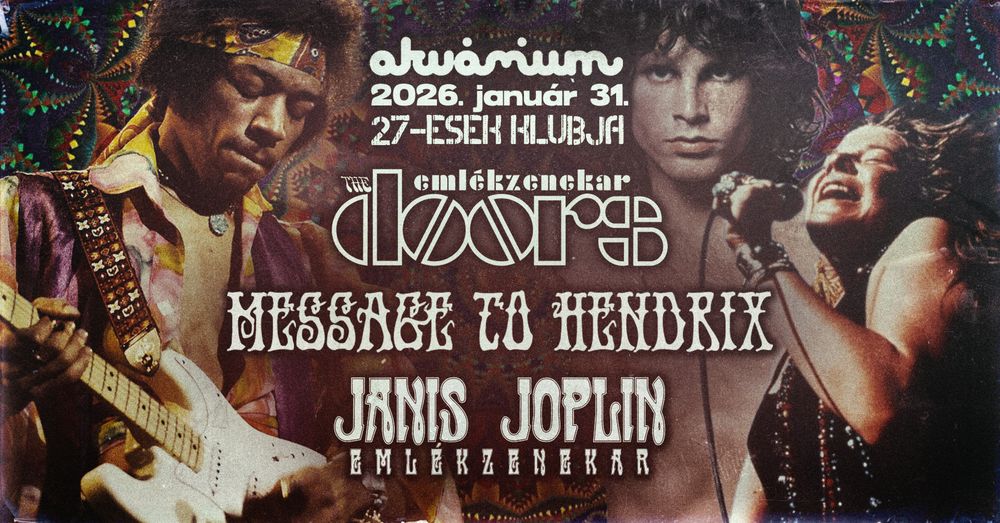 Csatlakozz hozzánk egy különleges éjszakára, ahol három klasszikus ikon – Jimi Hendrix, Janis Joplin és Jim Morrison – öröksége kel újra életre! Mindhárman 27 évesen távoztak, de zenéjük, hangjuk és energiájuk máig velünk maradt.