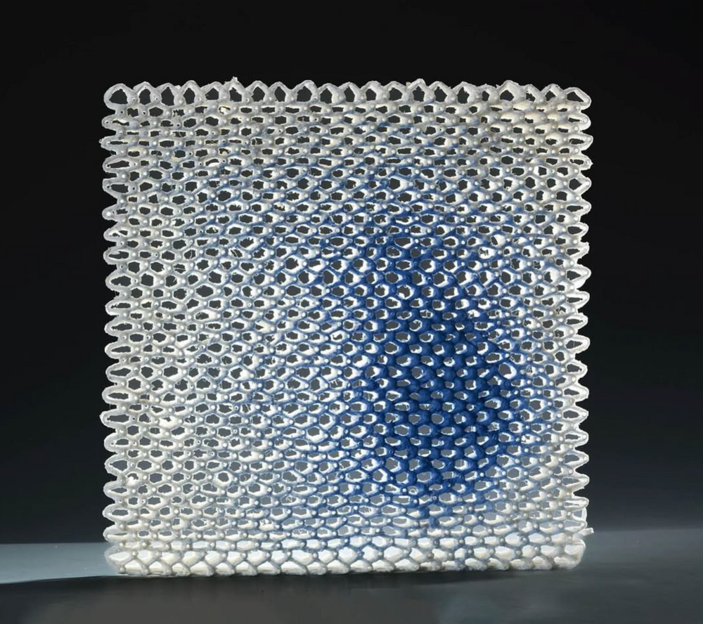 Maróti Viktória alkotásaiban a lágyság és a szilárdság kettőssége feszül egymásnak: a tárgyak anyagisága ellentmondásokat hordoz, és játékra hívja a szemlélő érzékelését. Munkáit a kerámia és a textil szimbiózisából hozza létre, olyan hibrid hatást elérve, amely elmossa a médiumok közötti határokat. A magas hőfokú égetés során az anyagok korábbi egysége transzformálódik: a textil kiég, a porcelán pedig megkövült lenyomatként őrzi annak emlékét.