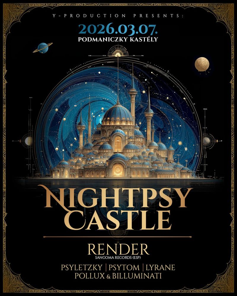 Ozora és Manas Fesztivál után végre Budapestre is megérkezik a spanyol nightpsy előadó: Render ! A Sangoma Records népszerű producere egy 2 órás élő szettel áll pult mögé igazán lebilincselő környezetben. Az éjszaka folyamán Render mellett a hazai psy szcéna neves képviselői megállást nem tűrő lendületes éjszakai pszichedelikus zenékkel táncoltatják meg a kastélyba látogatókat.