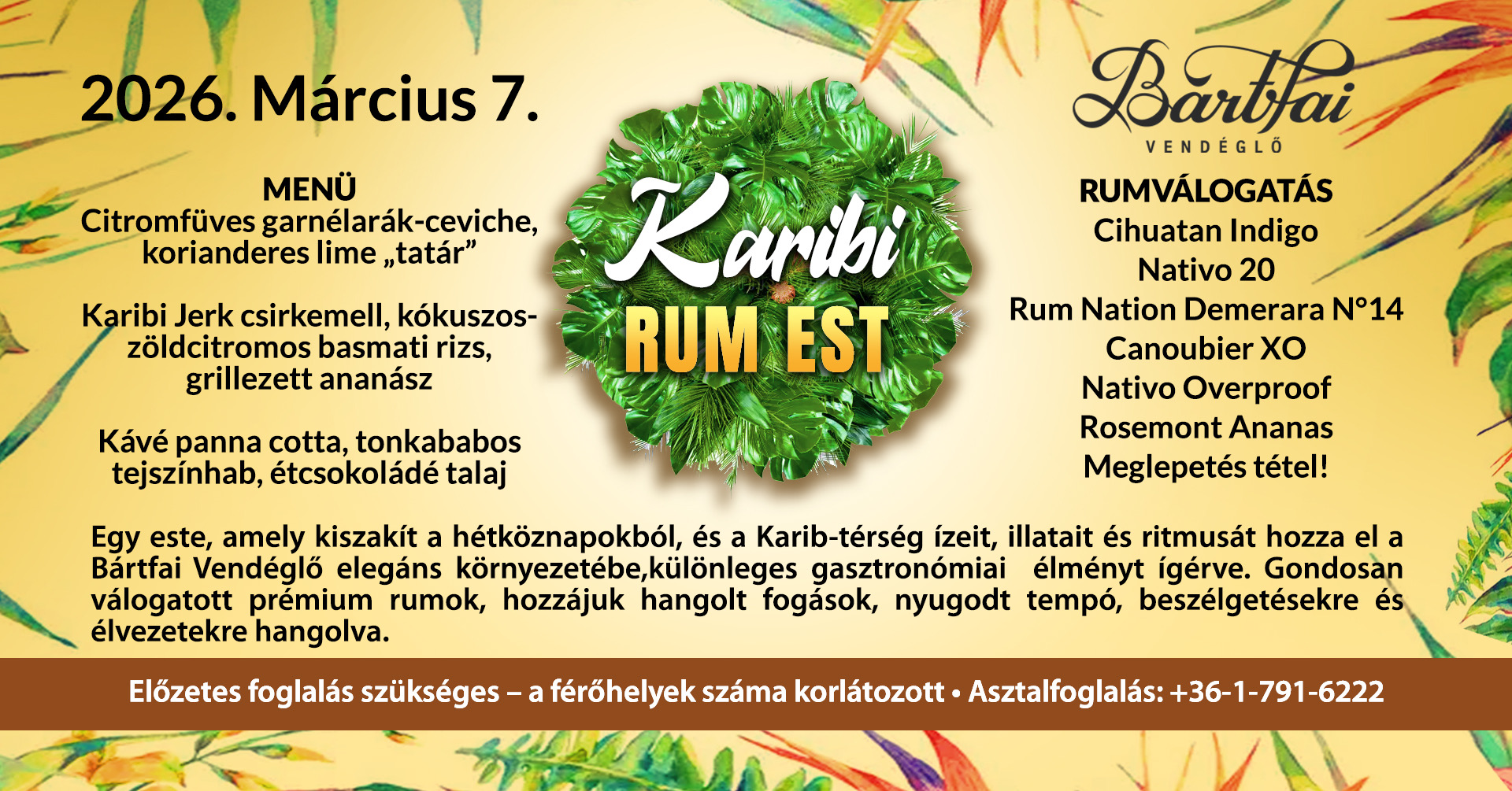 Karibi Rum Vacsoraest a Bártfai Vendéglőben