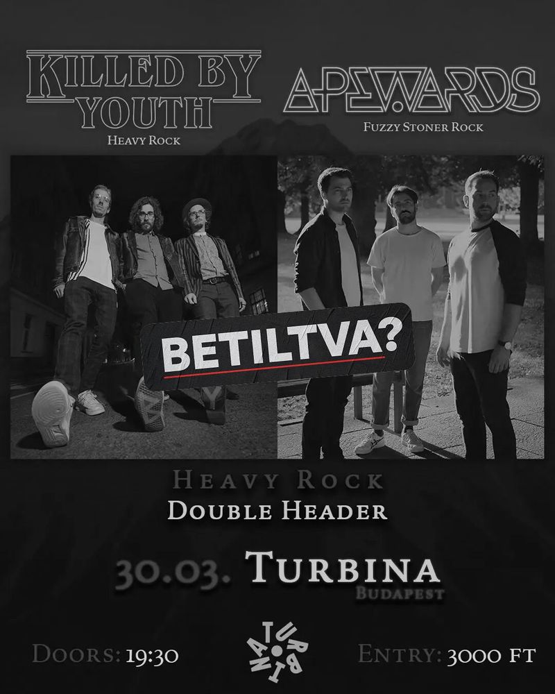 In spring 2026, Wels-based heavy rock trio Killed by Youth and Marburg’s stoner rock trio Apewards go on the road together for a co-headline tour. Two bands, two sounds — one night full of energy, uncompromising live power, and handcrafted rock music.