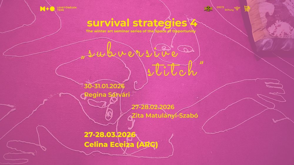 Negyedik éve szervezzük meg a Túlélési stratégiákat, a Lehetőségek tere téli művészeti szeminárium-sorozatát, idén a “társadalmi szövet” hívószó mentén. Az idei harmadik és egyben záró alkalmat 𝓒𝓮𝓵𝓲𝓷𝓪 𝓔𝓬𝓮𝓲𝔃𝓪, argentín képzőművész vezeti. Az esemény angol nyelvű.
