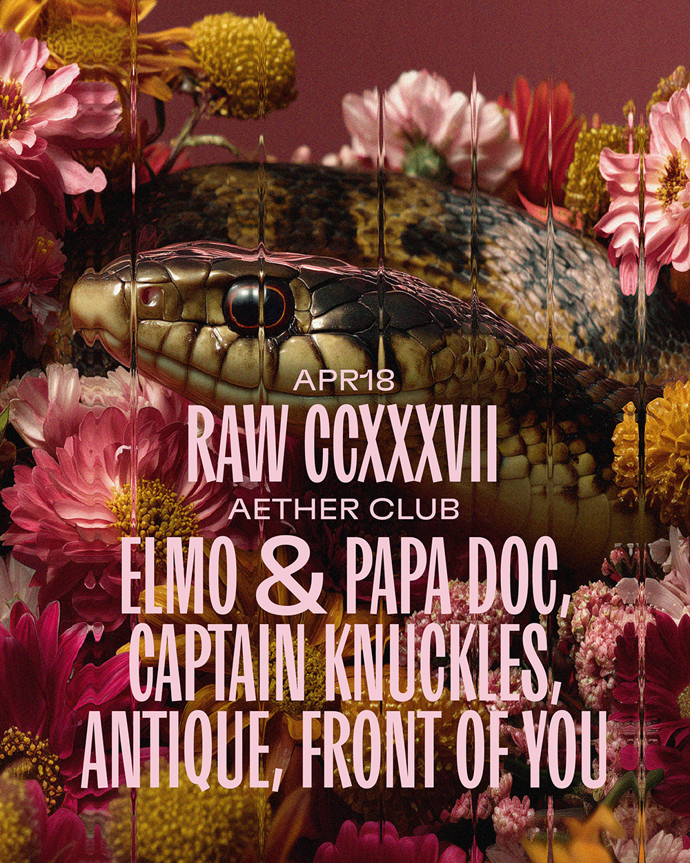 Elmo & Papa Doc, Captain Knuckles, Antique, and Front Of You arrive from different corners of the house scene to align into one shared pulse for a single night. Organic grooves, refined transitions, and raw dancefloor energy — this is RAW, where every sound moves with precision.