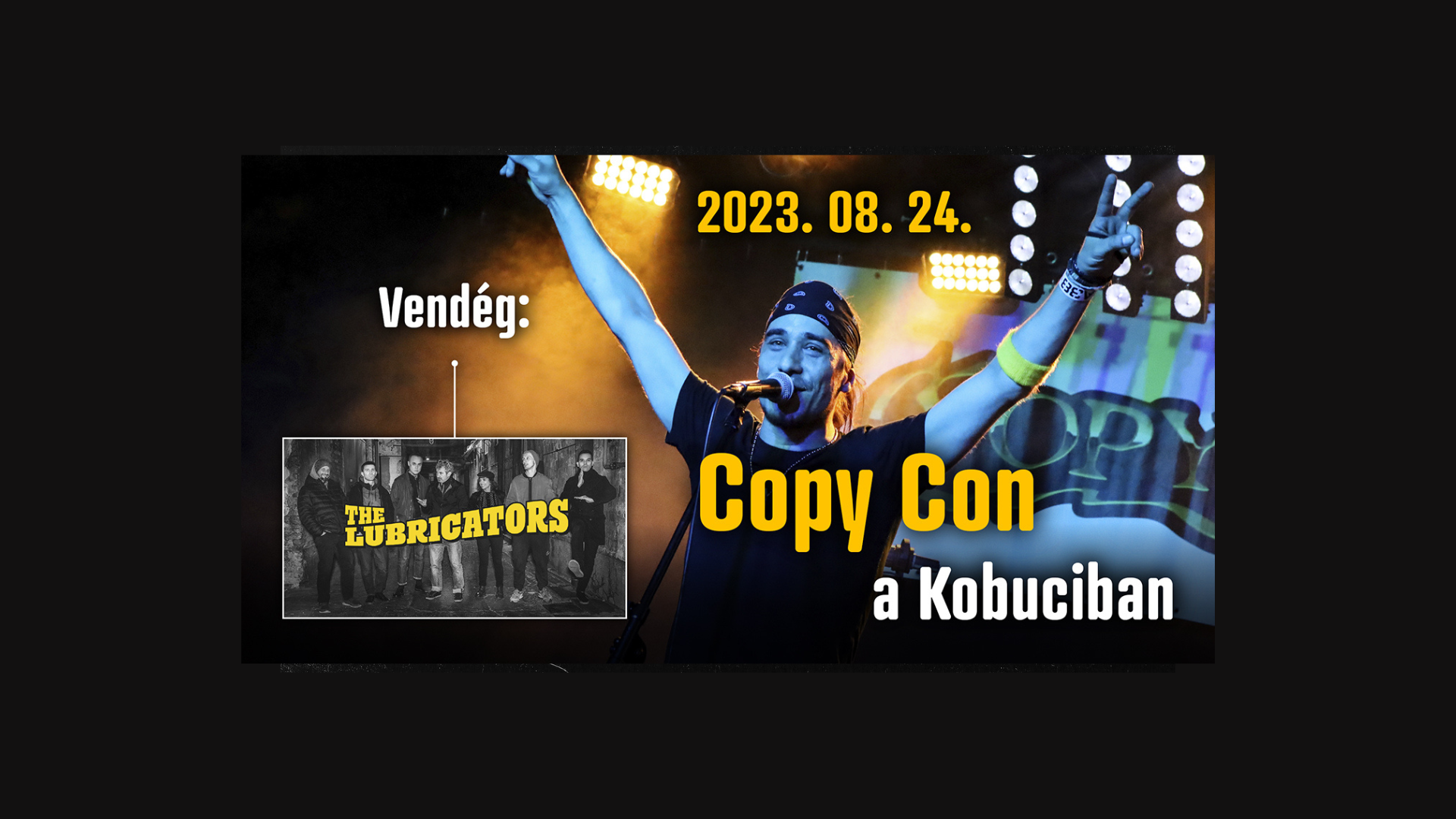 Hosszú kihagyás után idén újra zenekaros felállásban turnézik Copy Con. 2023-ban Budapesten utoljára a Kobuci kertben láthatjátok. A már megszokott fergeteges hangulatú Reggie bulival várunk mindenkit erre az estére. Vendég Zenekarral is készültünk